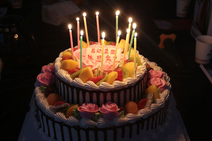 當(dāng)“祝你生日快樂……”這熟悉而美妙的旋律響起的時候,全場燈光熄滅,大家一起齊唱生日歌,壽星們許下了自己的生日愿望,現(xiàn)場氣氛被推上了高潮,大家其樂融融,幸福洋溢,歡聲笑語不絕于耳。