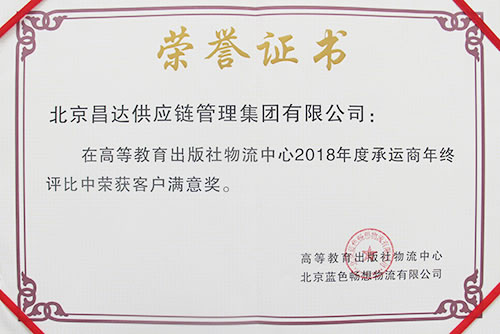 2019年4月底,昌達(dá)集團(tuán)參加了高等教育出版社2018年度運(yùn)輸服務(wù)商評(píng)選,作為物流行業(yè)的標(biāo)桿企業(yè),昌達(dá)集團(tuán)憑借一直以來(lái)的優(yōu)質(zhì)服務(wù)而備受認(rèn)可,一舉斬獲“2018年度優(yōu)秀承運(yùn)商”和“客戶(hù)滿(mǎn)意獎(jiǎng)”兩項(xiàng)獎(jiǎng)項(xiàng)。